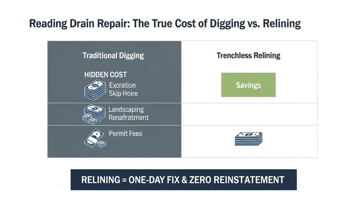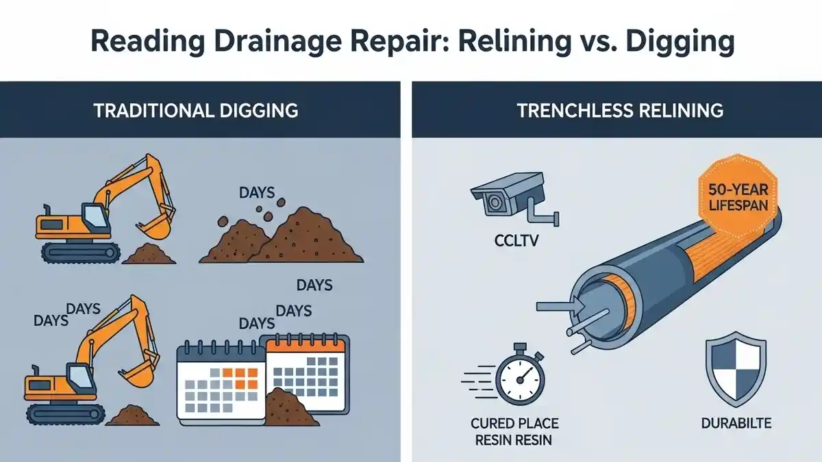 Avoid costly, messy excavations. Compare Egham Drain Relining vs Digging to save your home, time, and money with our expert, minimally invasive, and durable no-dig repair solutions for local drains.